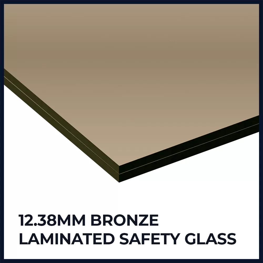 12.38mm Bronze Laminated Safety Glass is commonly used in large residential glazing for window and door panels, window panels next to doors, and in bathrooms. Also used in Factories, Offices & Commercial Settings for Internal Partitions, Door / Window Panels, Ballustrading, Shopfronts and Skylights.